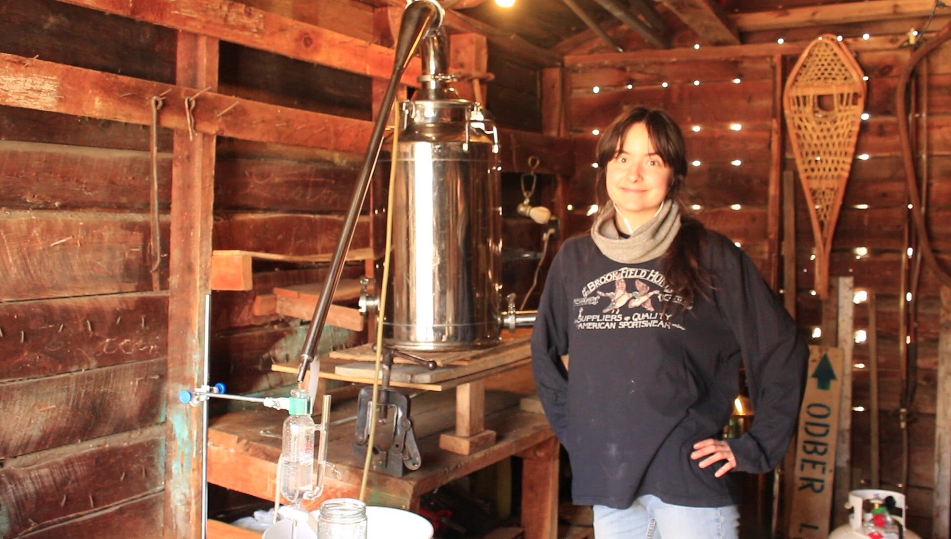 Presque toutes les huiles essentielles que j’utilise sont faites maison, grâce à notre distillateur de 50 litres. Il a l’air imposant, mais il produit seulement une petite quantité d’huile à la fois, ce qui rend chaque goutte encore plus précieuse. Je cueille les plantes à la main, toujours avec respect, et Antoine mon conjoint m’aide énormément dans tout ce processus. Ensemble, on transforme nos récoltes en huiles essentielles pures et authentiques, qui deviennent ensuite le cœur de mes produits.